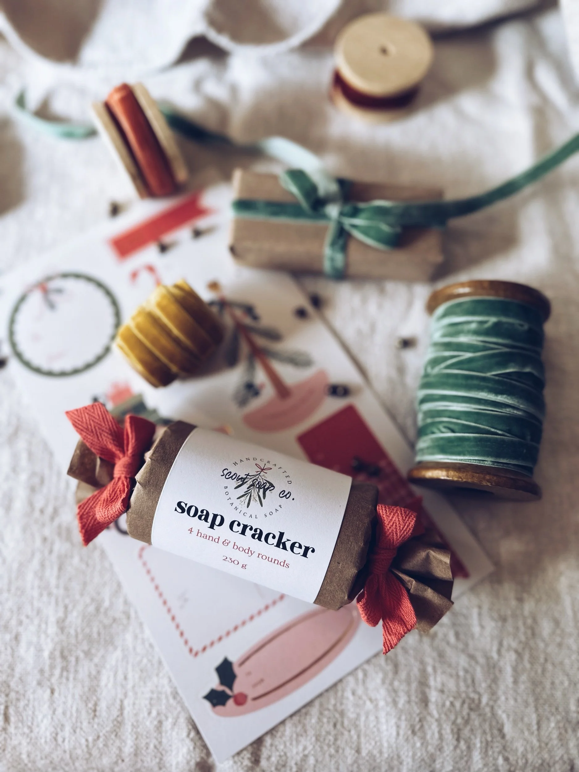 Surprise and delight this holiday season with a Scout Soap Co. festive Christmas Cracker featuring all 4 of the Winter release soaps. Perfect for gifting or adding a pop of seasonal cheer to your own holiday routine.